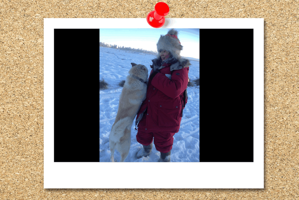 顔周りの髪の毛が凍っているのがわかります。日本から、防寒のブーツを持っていったのですが、ブーツのゴムが寒さで凍ってしまい、現地でブーツを購入しました。